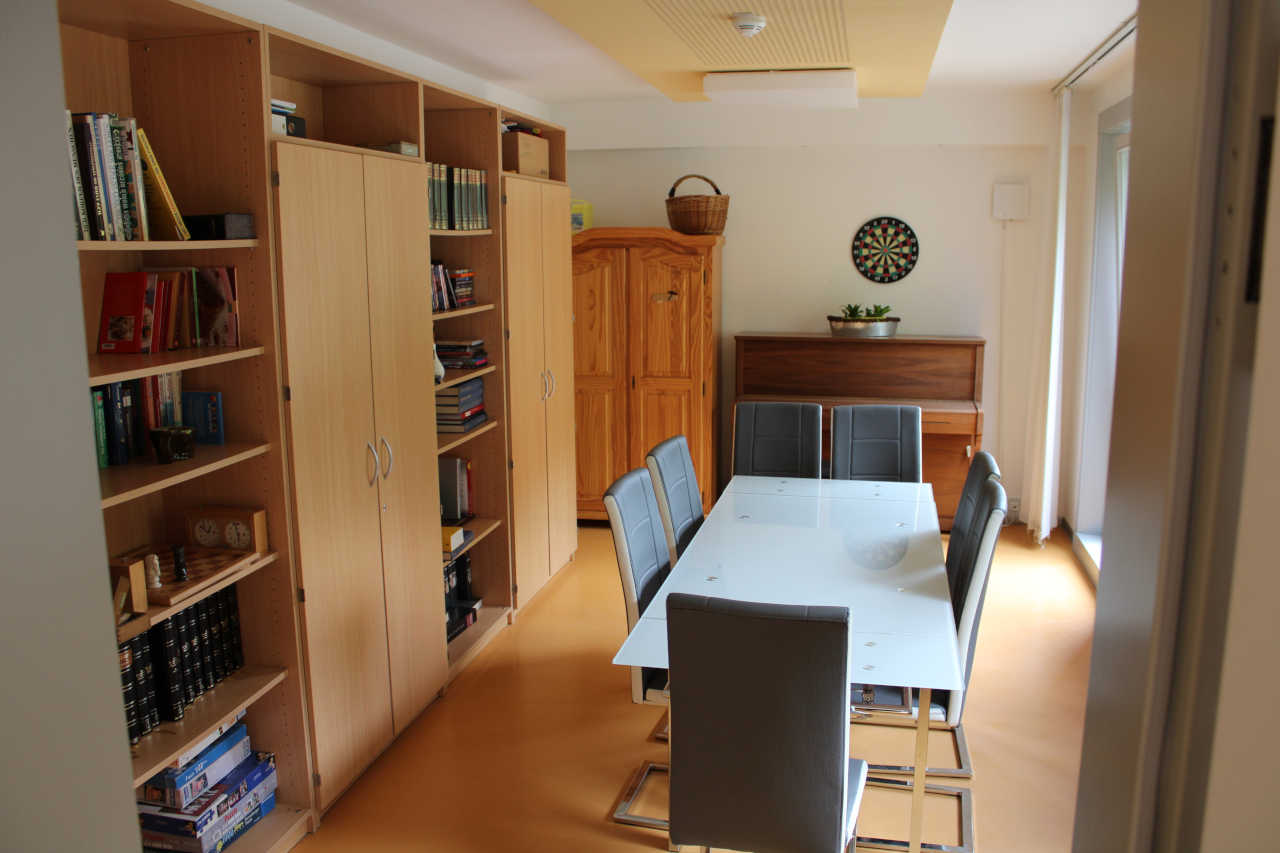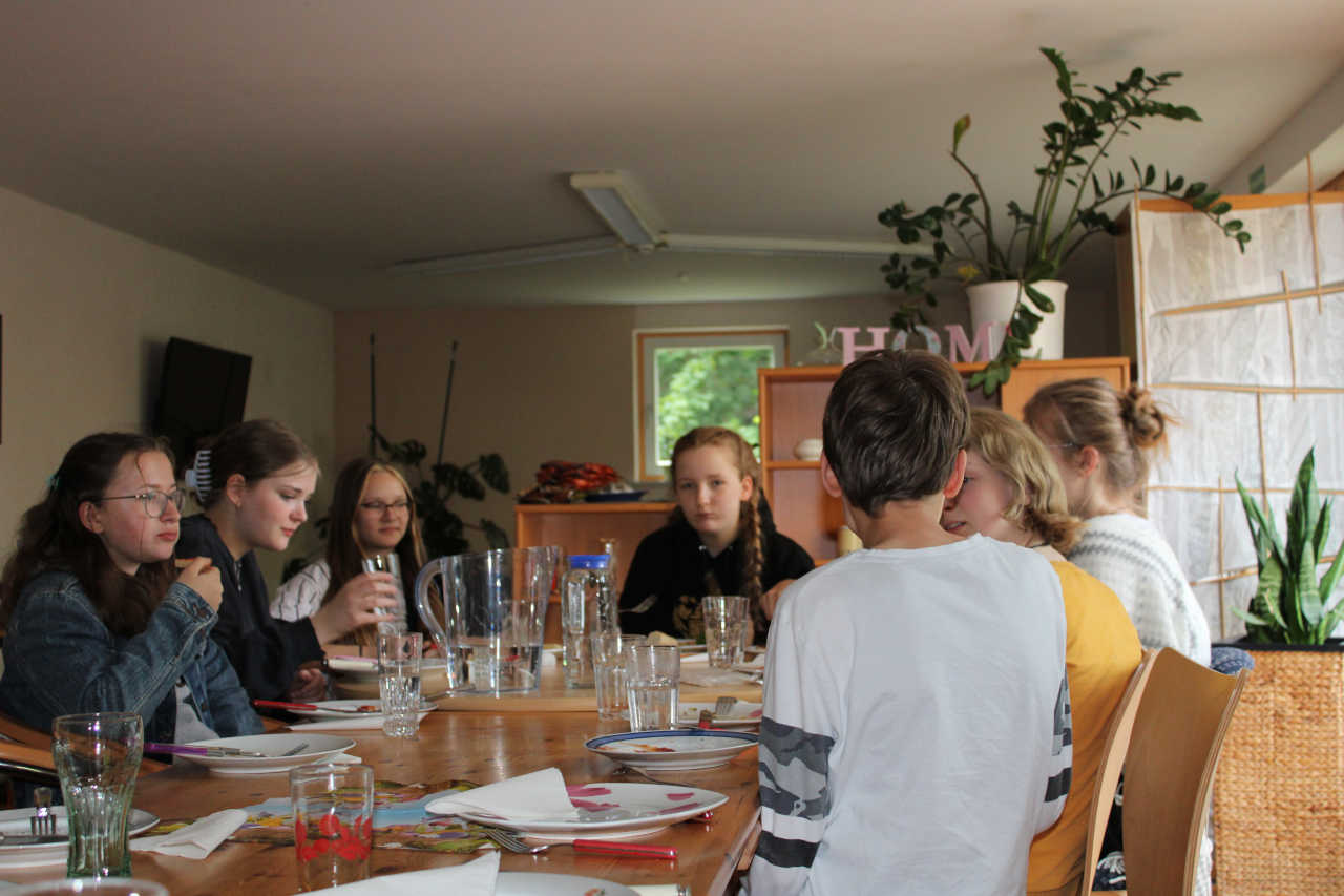 Sollte sich das Wetter verschlechtern, können die Klub- bzw. Gemeinschaftsräume in den Häusern genutzt werden. Für Arbeitsgemeinschaften sind Räume mit passendem Equipement eingerichtet. In der Schülerküche entstehen etliche selbst kreierte kulinarische Delikatessen. Die Bibliothek ist ein ruhiger Rückzugsort für Bücherliebhaber.